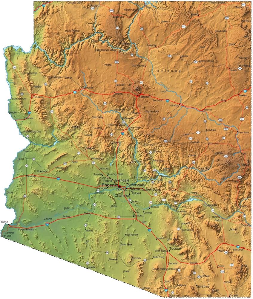 Amazon.com: Home Comforts Detailed Elevation map of Arizona State